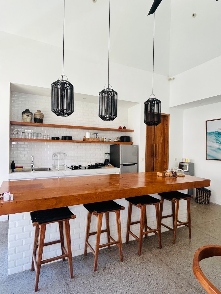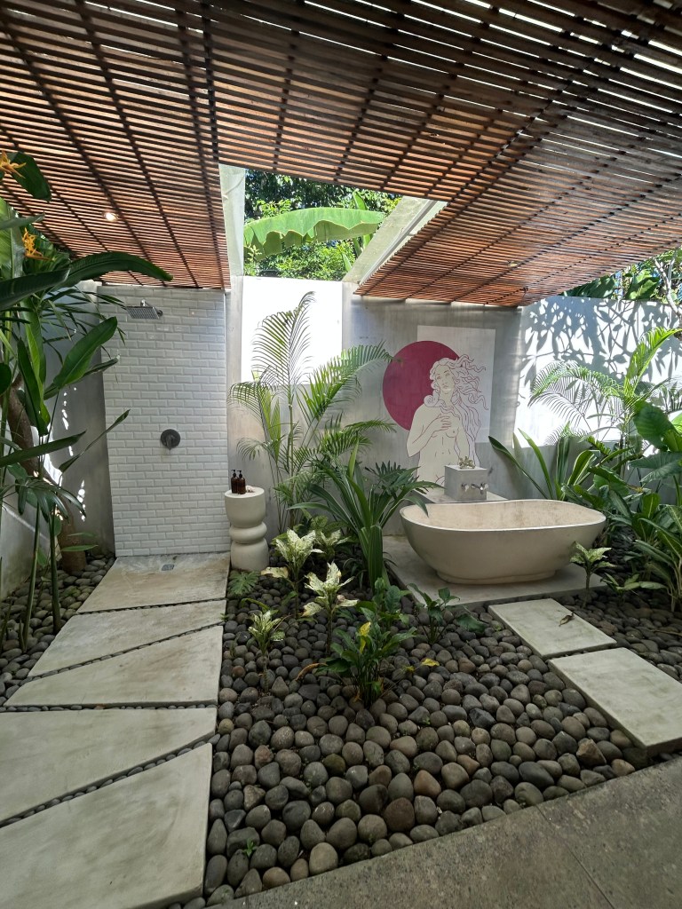 We stayed at Loop Villas, tucked just off the main road in a quiet side street. It was so stylish and comfortable, a super relaxed communal outdoor/ indoor living feel, and walking distance to restaurants, cafes, and the beach. The boys had space to hang out independently, while I still felt close enough to keep tabs. The outdoor bathrooms were incredible and the pool was a post surf life saver. Also the property manager Leo could not do enough to help us – this was invaluable for me travelling alone with my boys.